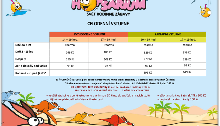 Ceny platí pouze pro Hopsárium České Budějovice. Využijte slevu při nákupu vstupenek online.